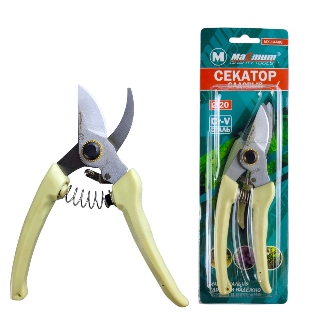 Секатор с пластиковыми рукоятками – это садовые ножницы с лезвиями, выполненными из высокопрочной инструментальной стали SK5. Чтобы эта несложная конструкция могла справляться с толстыми ветками верхнее лезвие (оно является рабочим) качественно заточено и отшлифовано. Инструмент позволяет сочетать длительный рабочий ресурс с хорошим качеством резания. Общая длина 175 мм, длина лезвия 45 мм.