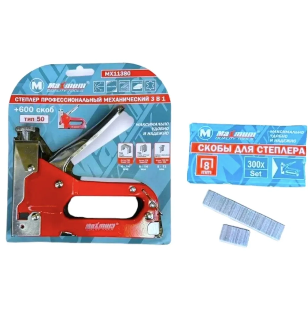 Степлер 3 в 1 профессиональный с набором скоб 8 мм Тип 50 от "MAXIMUM QUALITY TOOLS" оборудован верхним регулятором силы удара, и может использоваться с гвоздями и скобами. Благодаря регулятору натяжения пружины, можно легко подобрать оптимальную силу удара, чтобы не повредить рабочую поверхность и материалы для обшивки.